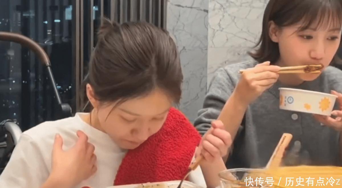 在她的好友发布的相片中,前一天,她仍是行径未便,吃东西时极为鲁钝,但第二天,却仍是能食用锅包肉,况且用脚打开了一册书。