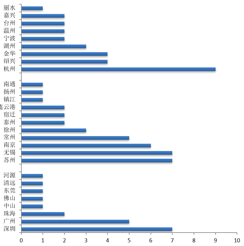 广东方面:深圳7家,广州5家,珠海2家,中山、佛山、东莞、清远、河源各1家。